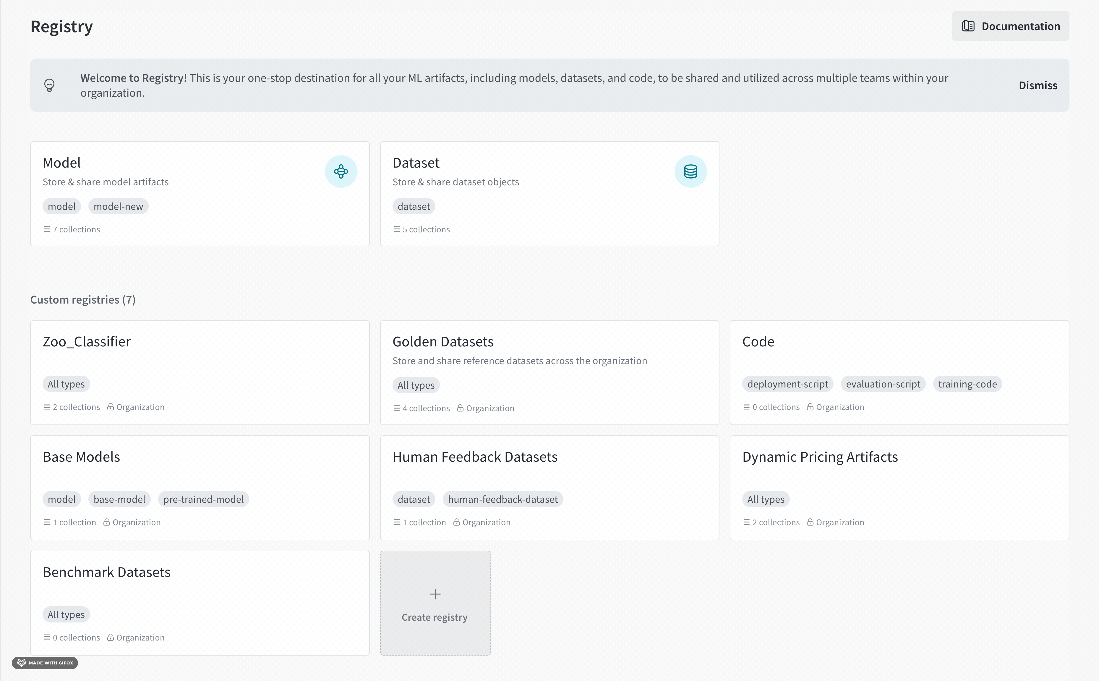 アーティファクトをレジストリにリンクすると、そのアーティファクトがそのレジストリに「公開」されます。 レジストリにアクセスできるユーザーは、コレクション内のリンクされたアーティファクトのバージョンにアクセスできます。