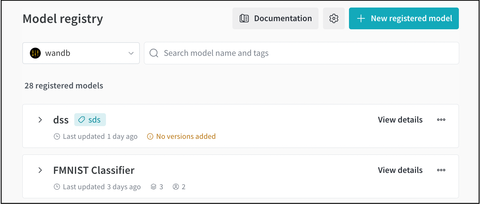 - W&B モデルレジストリアプリケーションに移動します:https://wandb.ai/registry/model